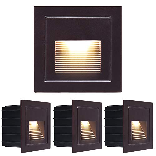 Price review SUPERDANNY 120V LED Step Light with Junction Box, Indoor/ Outdoor IP65 Waterproof 3000K Warm White 3W Stair Light Fixture, Wall Mount Square Staircase Lamps for Pathway Driveway Yard Lawn, 4 Pack